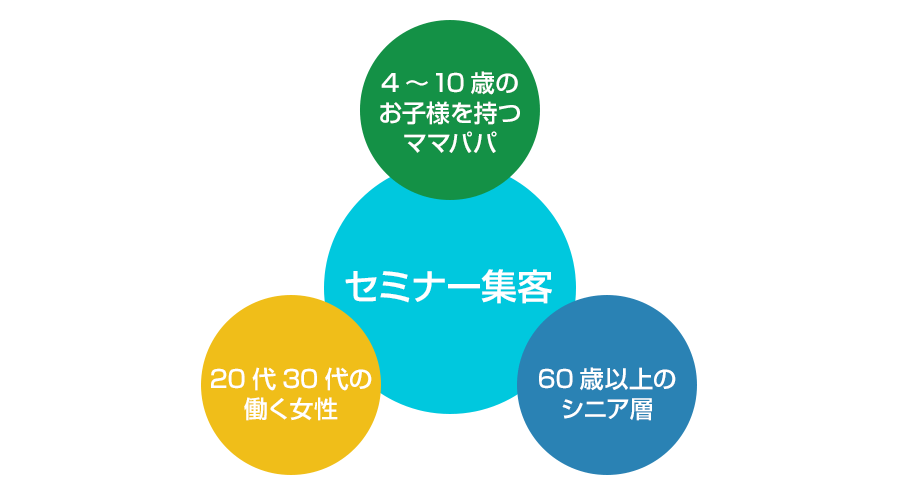 様々なターゲットに向けてマッチしたイベントなどと絡めてセミナーを開催することで、アポイントにつながるユーザーを集客します。